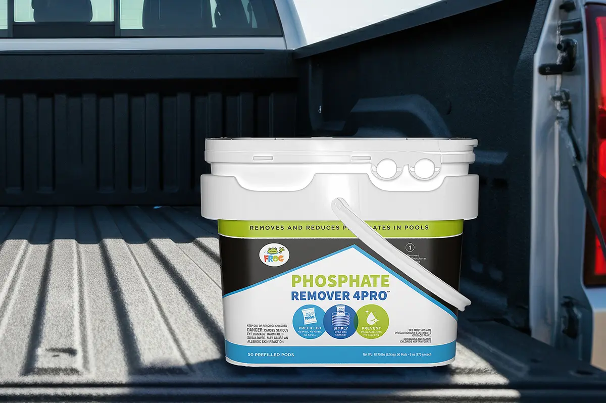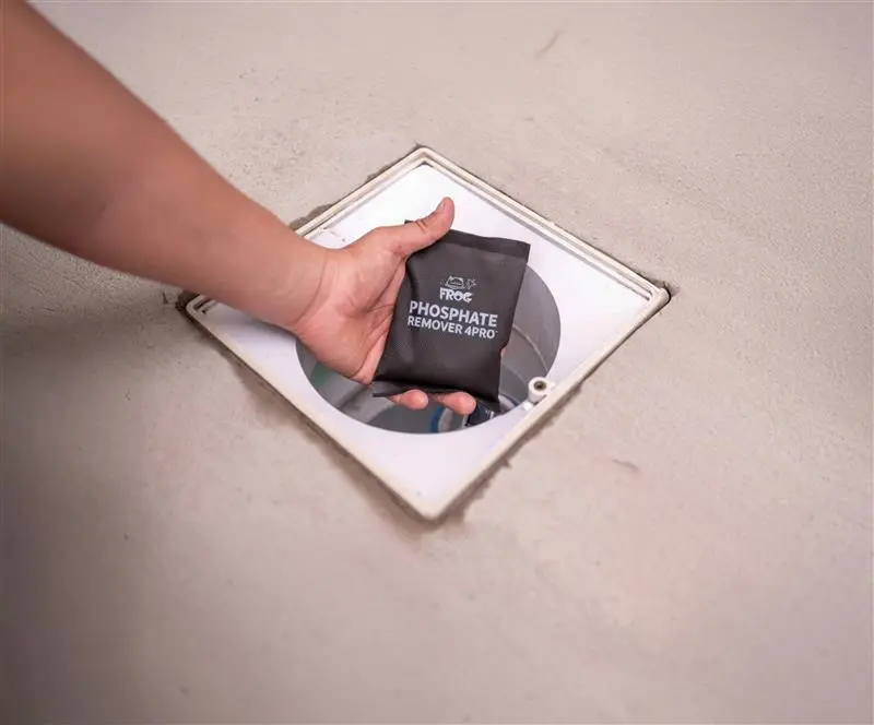 The FROG Phosphate Remover 4Pro pod contains a dry, concentrated formula that dispenses within hours.